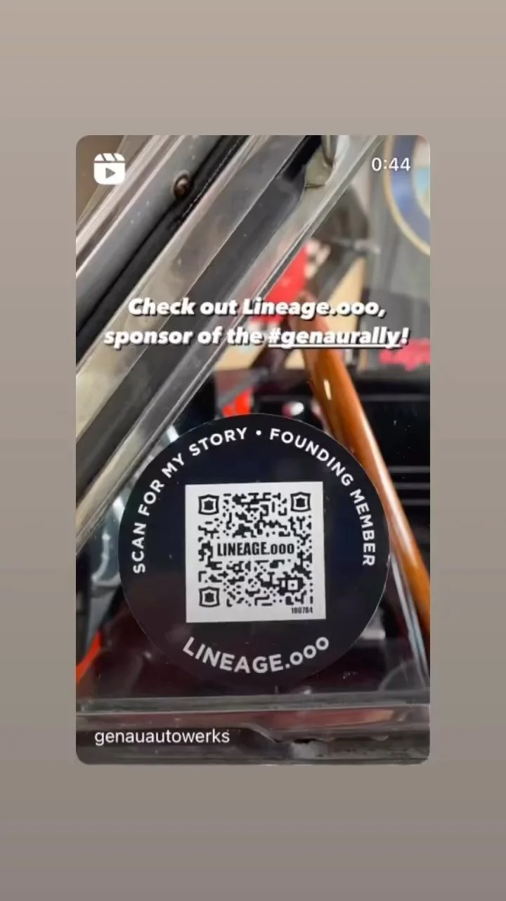 Attach a LINEAGE.ooo QR badge on your car window and enable smartphones to connect to your FREE car profile page on LINEAGE.ooo